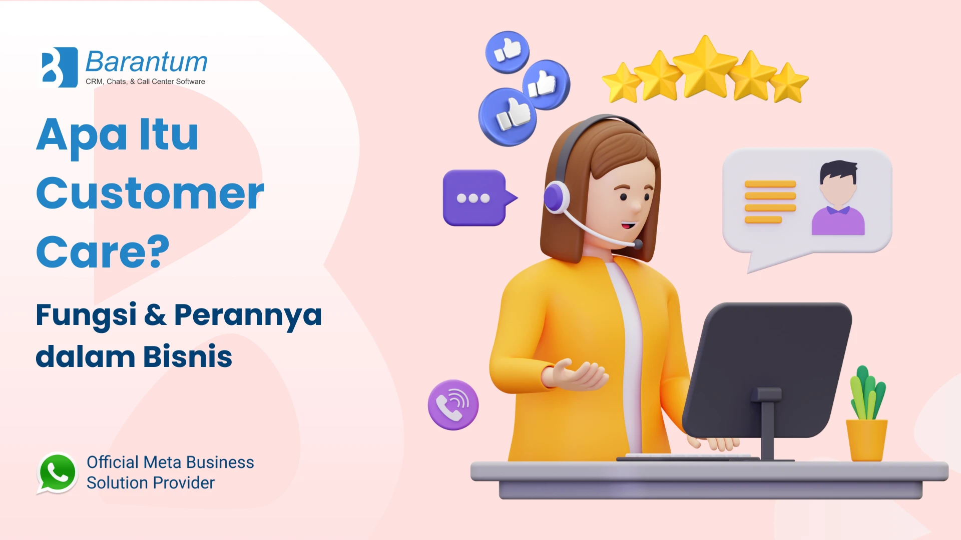 Customer care adalah upaya perusahaan untuk memberikan perhatian, dukungan, dan solusi terbaik kepada pelanggan. Fokusnya tidak hanya menyelesaikan masalah, tetapi juga membangun hubungan emosional yang kuat.