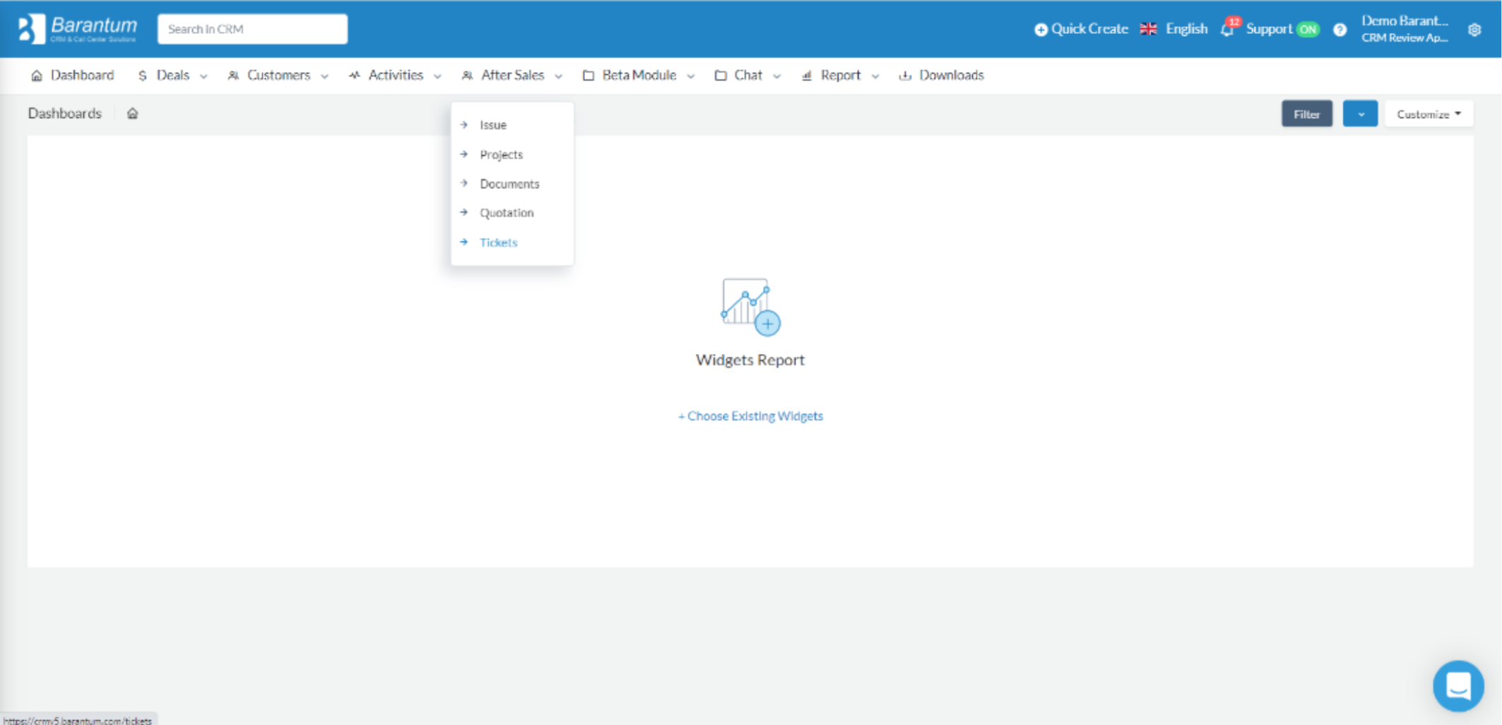 1. Buka Barantum CRM, Kemudian klik “Ticket”