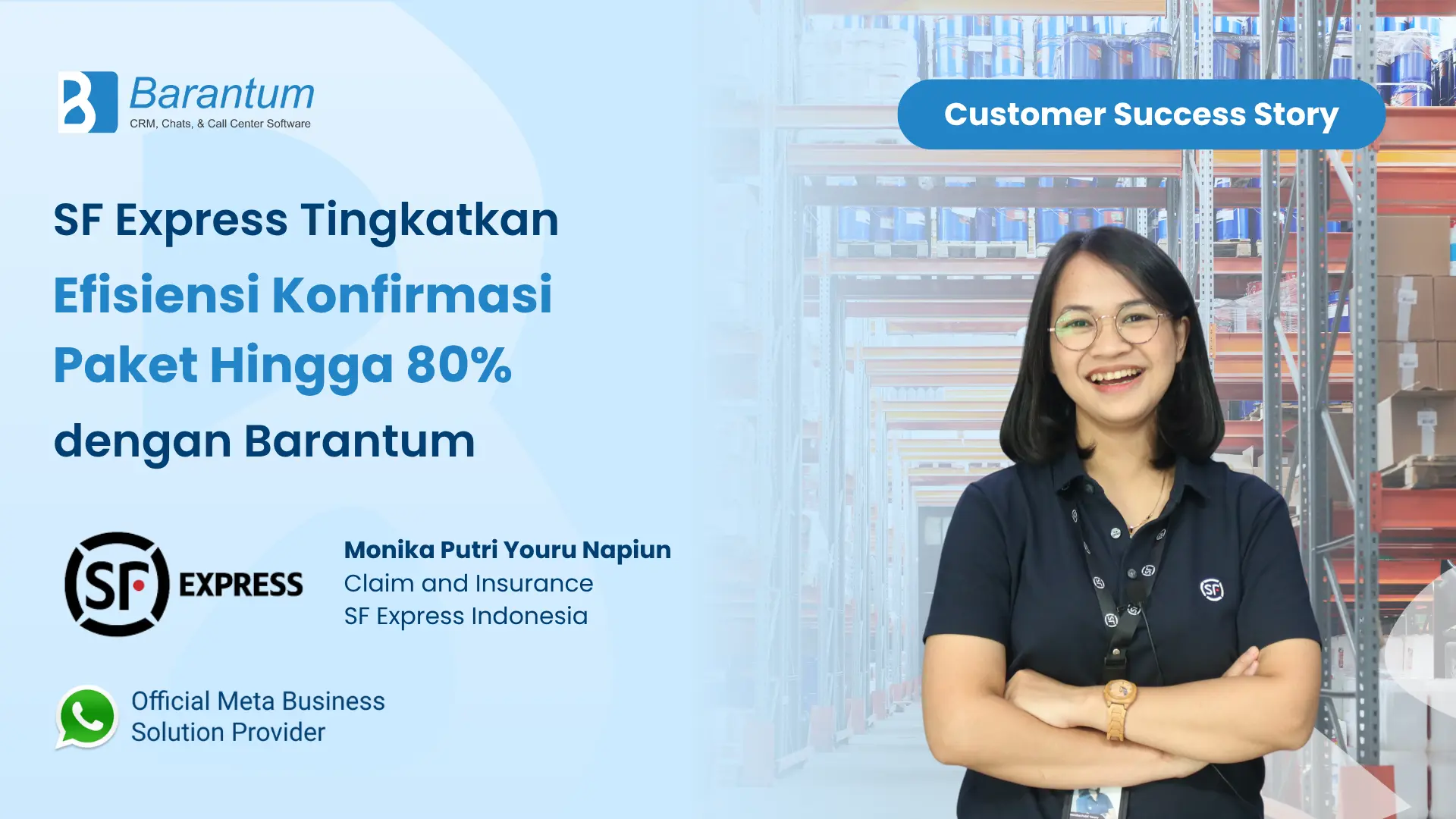 Youru Napiun, dari tim klaim SF Express Indonesia, bercerita bagaimana peran Barantum membantu menjaga standar tinggi layanan SF Express tetap konsisten sekaligus membuat pekerjaan tim lebih efisien.