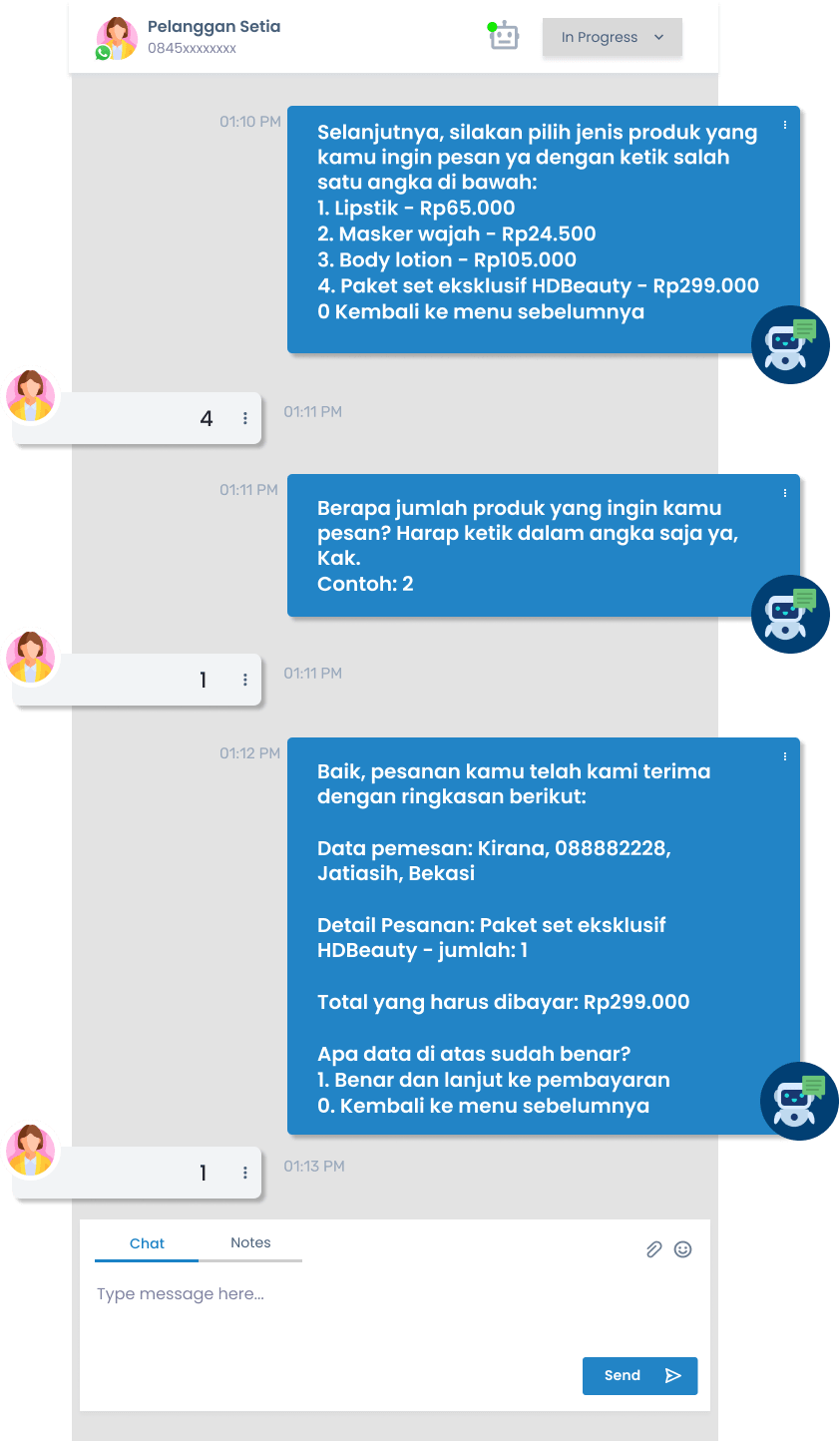Adanya fitur autoresponder dan Chatbot membuat pesan pelanggan dapat otomatis terbalas. Khusus pada WhatsApp, Anda bisa memanfaatkan Chatbot, balas pesan otomatis yang lebih canggih, dan mengatur informasi apa saja yang dapat disampaikan kepada pelanggan.
